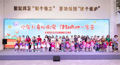 “和田地区的小朋友们,你们好。今天是六一儿童节,是咱们共同的节日,我们画了一幅画送给你们,希望咱们能和画上一样,永远是最好的家人和朋友,欢迎你们能来天津做客......”。6月1日上午,来自我市孩子们的“六一”祝福,通过网络传送到了4000多公里以外的新疆和田地区。这是天津市妇联为加强与新疆和田地区妇联互动交流,组织开展的“津和妇女一家亲”交流培训活动的一项安排,也是恰逢六一国际儿童节,津南区妇联举办的“少年儿童心向党 津和两地一家亲”庆六一活动的一项内容。庆祝活动上,不仅有我市的小朋友表演节目,表达对党和祖国的热爱以及津和两地共庆六一的喜悦之情,还有来自津南区女企业家联盟的爱心企业为和田地区妇联捐赠了慰问金3万元,作为献给和田地区儿童的节日祝福。