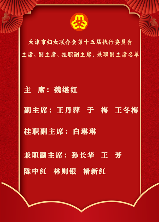 9月26日,天津市妇女联合会第十五届执行委员会第一次全体会议召开,选举产生天津市妇女联合会第十五届执行委员会主席、副主席、挂职副主席、兼职副主席、常务委员及天津市出席中国妇女第十三次全国代表大会代表。